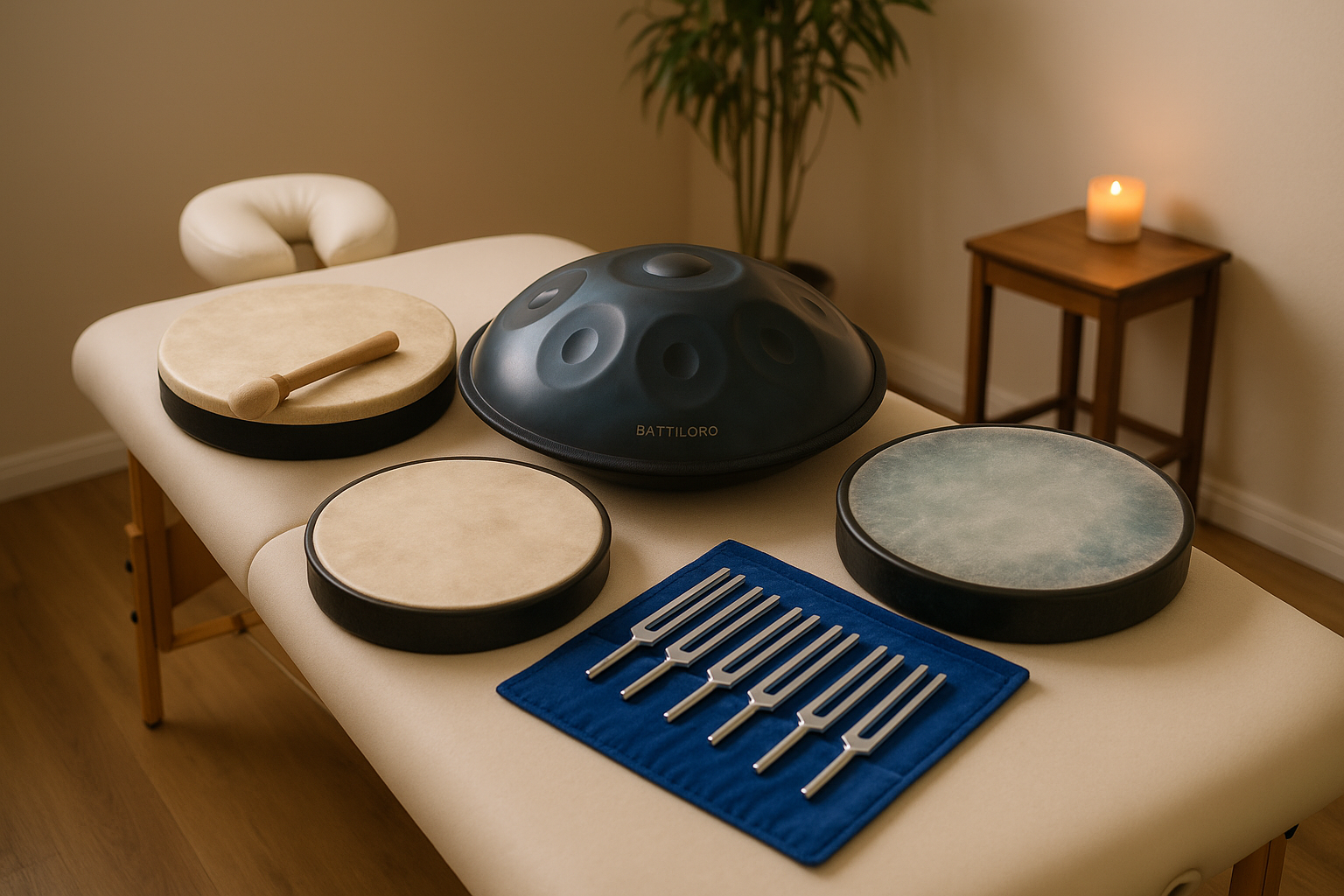 Die Kombination aus schamanischem Rhythmus, Stimmgabel-Anwendungen, gezielten Frequenzen und Klangarbeit kann den Körper dabei unterstützen,
